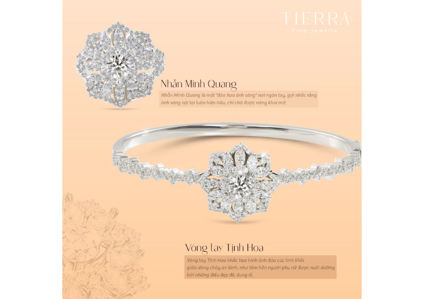 - Thiết kế độc quyền và tinh xảo: Tierra cung cấp dịch vụ thiết kế và chế tác riêng theo yêu cầu, giúp khách hàng sở hữu món trang sức “độc bản” mang dấu ấn cá nhân và phù hợp với bản mệnh phong thủy.