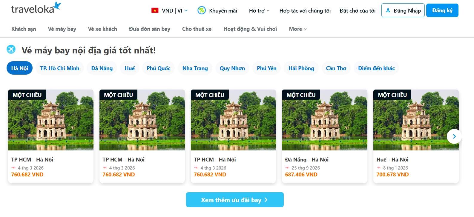 Traveloka là nền tảng hỗ trợ hành khách dễ dàng check giá vé VietJet Air dịp Tết một cách nhanh chóng và minh bạch. Khi tìm chuyến bay, bạn có thể so sánh giá theo từng ngày, khung giờ bay và hạng vé khác nhau để lựa chọn phương án phù hợp với ngân sách. Ngoài ra, Traveloka thường hiển thị đầy đủ giá vé đã bao gồm thuế, phí, giúp bạn chủ động tính toán chi phí và tránh phát sinh ngoài dự kiến trong mùa cao điểm Tết.