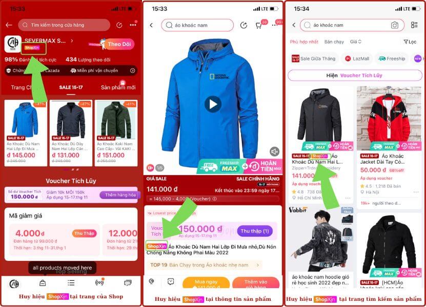Nếu sản phẩm/Nhà bán hàng thuộc loại Shop này sẽ có một huy hiệu “Shop Xịn” được đặt như hình dưới đây: